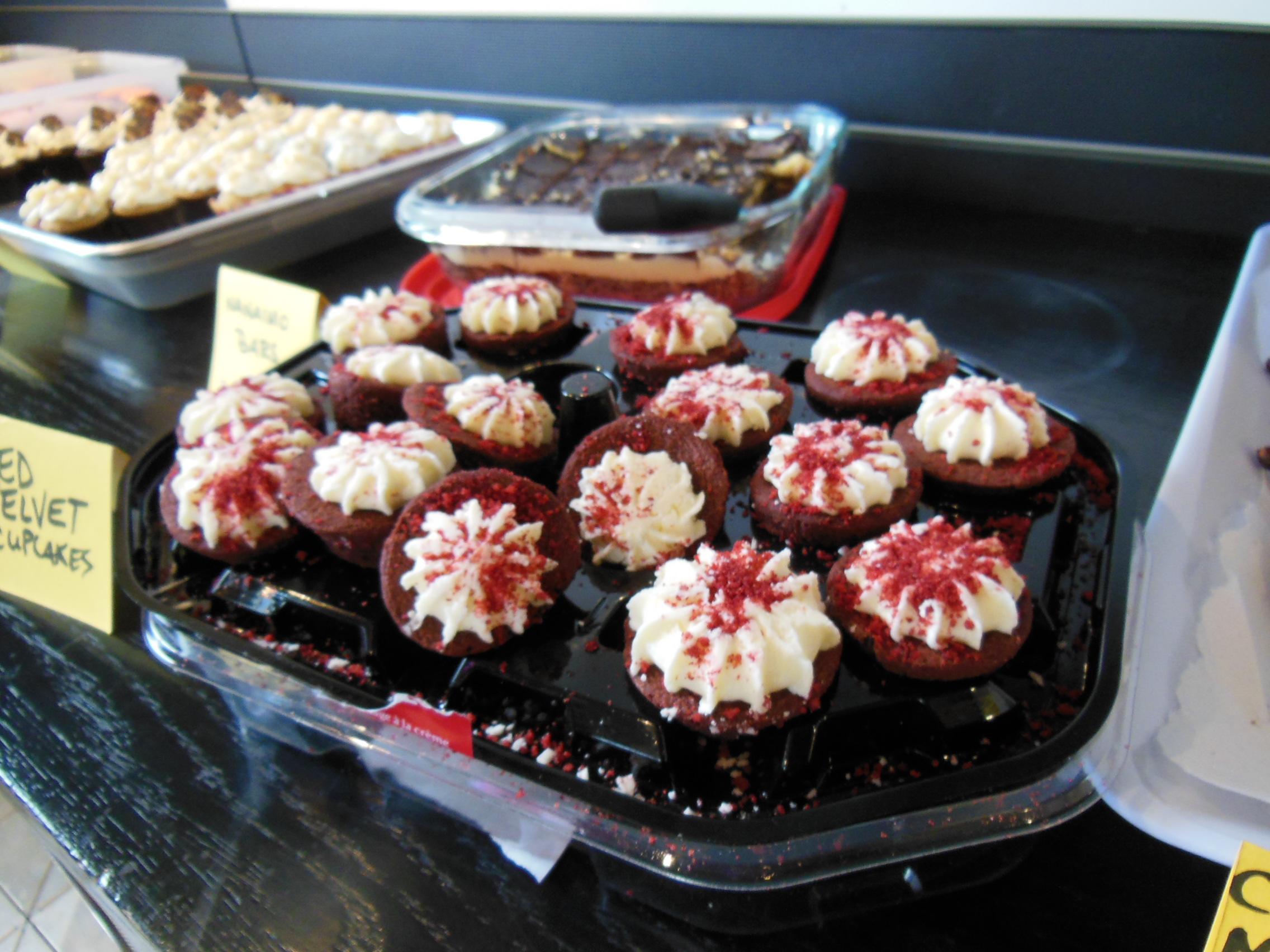 Contributions were not limited to homemade baked goods as these red velvet brownies proved. Someone also brought store-bought Chinese flour cakes!