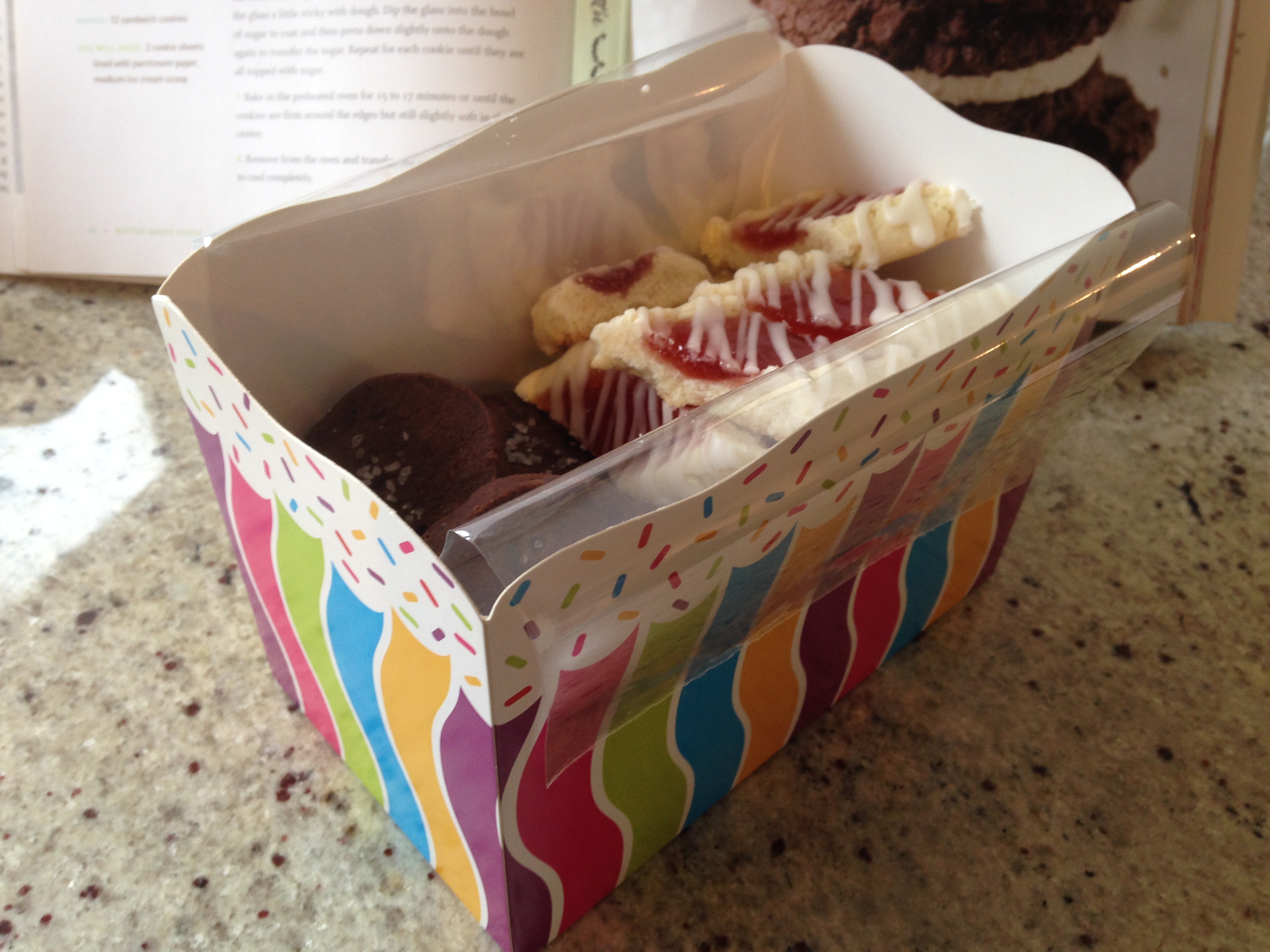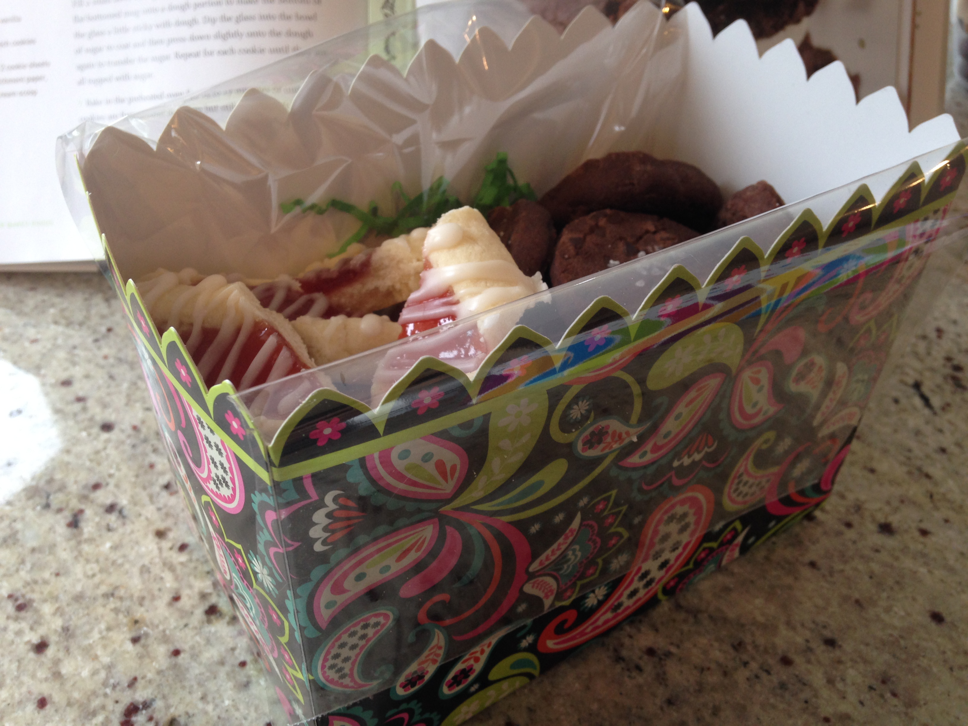 • Some packaging for your treats. This can be brown paper bags, small tin containers, or tupperware. I found these decorative treat boxes at Bulk Barn (see below) that I will hand-deliver to their homes.  Well, at least to two of them. One of my friends happens to live in another city, so I’ll be sending it via post in a less decorative box.
